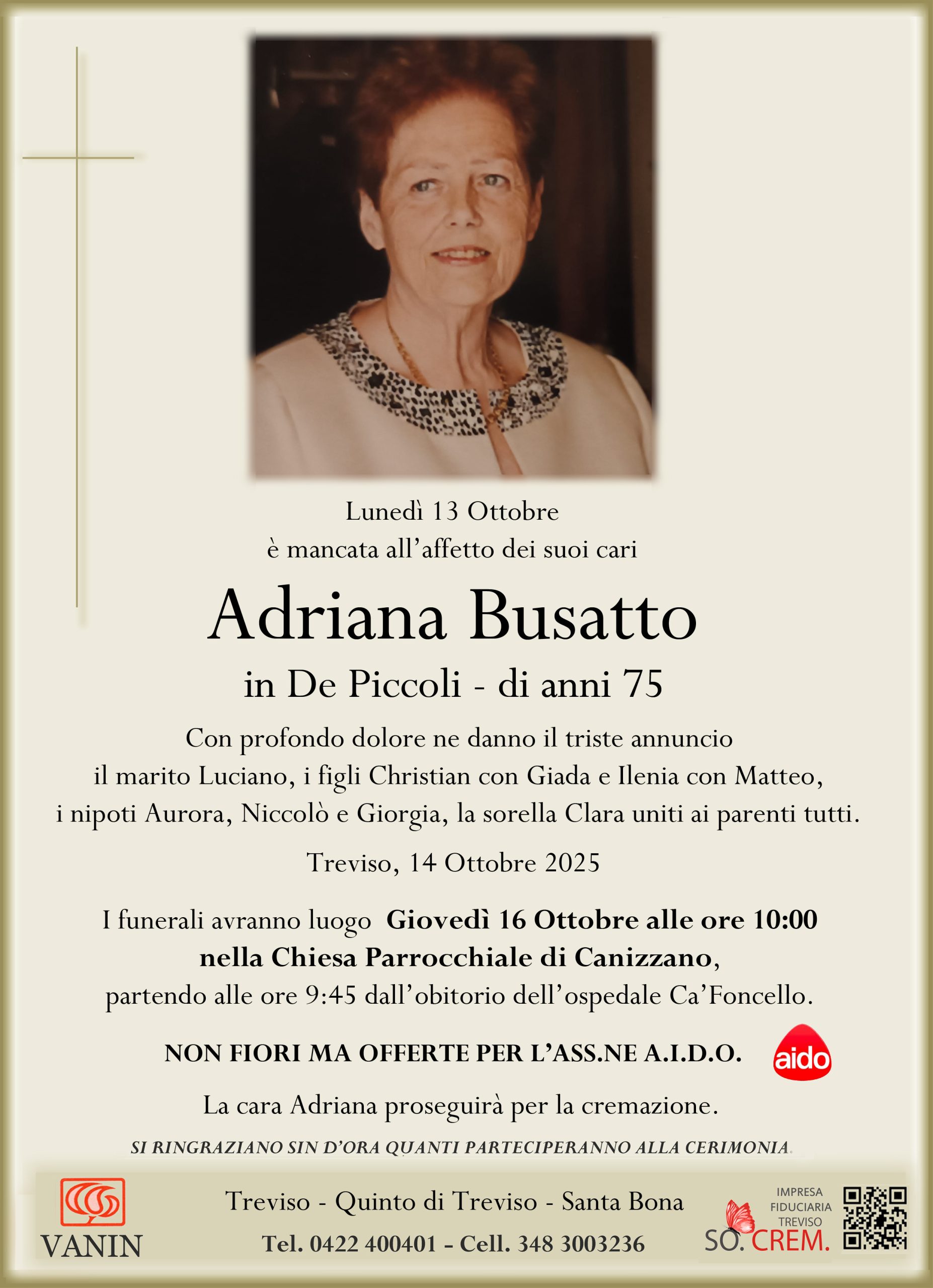 Data del decesso: Lunedì 13 Ottobre 2025Data cerimonia: Giovedì 16 Ottobre 2025