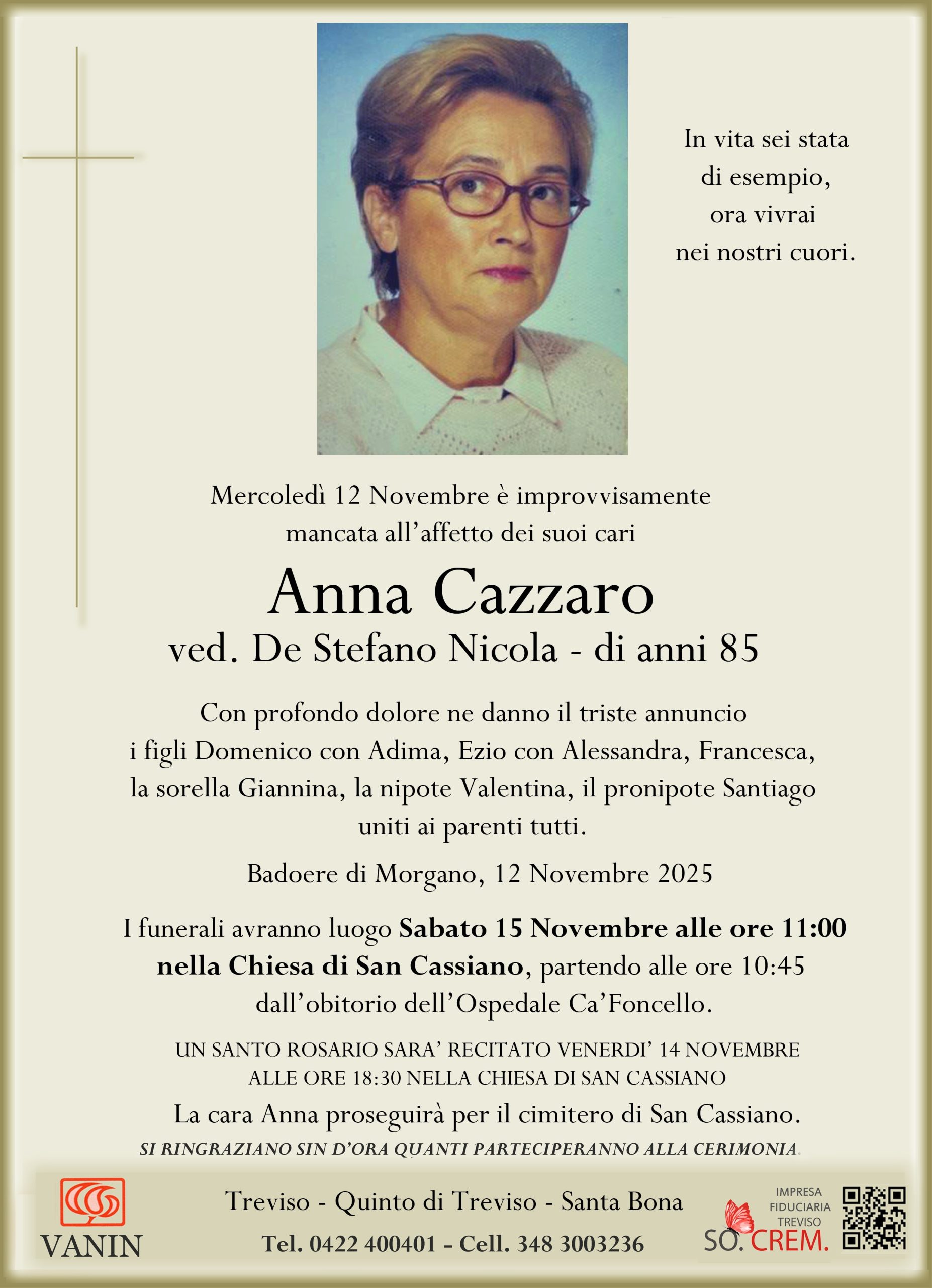 Data del decesso: Mercoledì 12 Novembre 2025Data cerimonia: Sabato 15 Novembre 2025