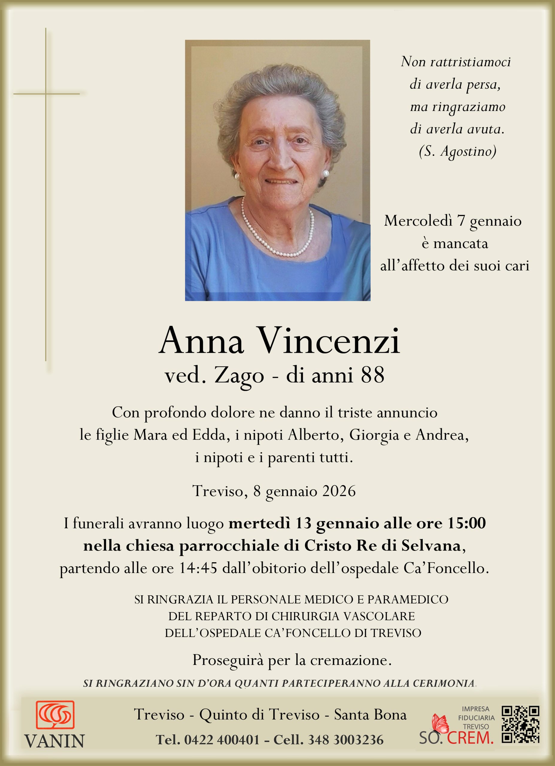 Data del decesso: Mercoledì 7 Gennaio 2026Data cerimonia: Martedì 13 gennaio 2026