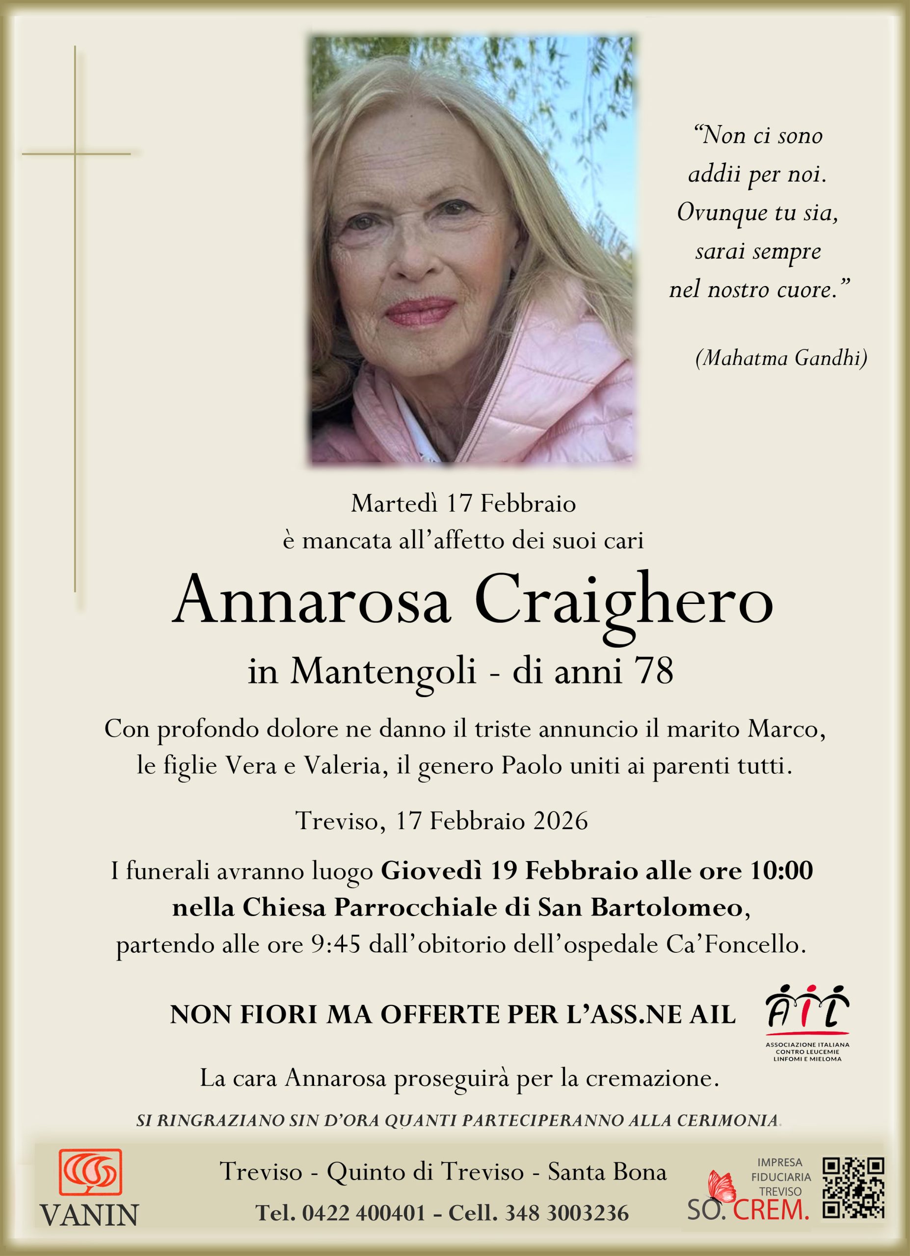 Data del decesso: Martedì 17 Febbraio 2026Data cerimonia: Giovedì 19 Febbraio 2026