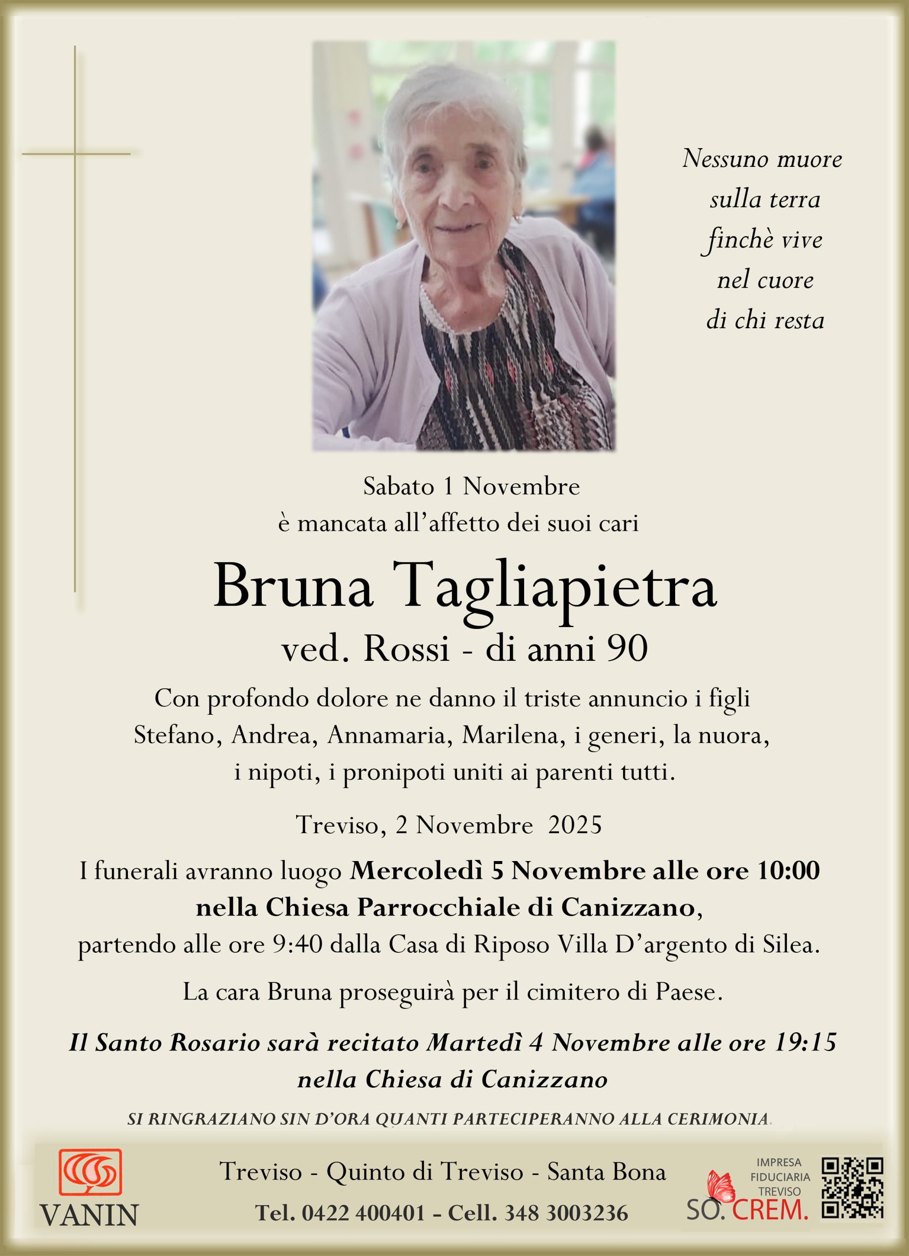 I funerali avranno luogo Mercoledì 5 Novembre alle ore 10:00