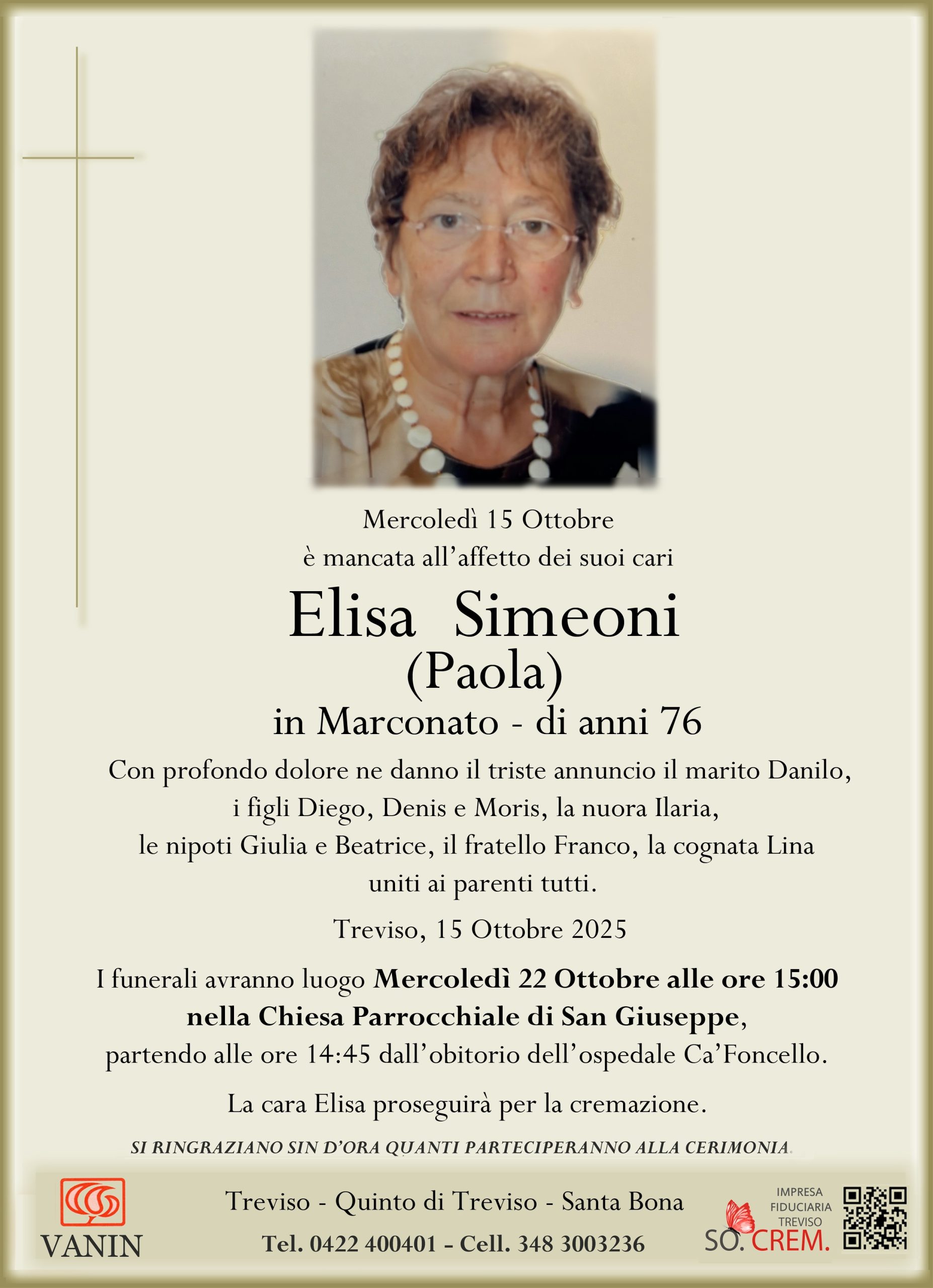 Data del decesso: Mercoledì 15 Ottobre 2025Data cerimonia: Mercoledì 22 Ottobre 2025