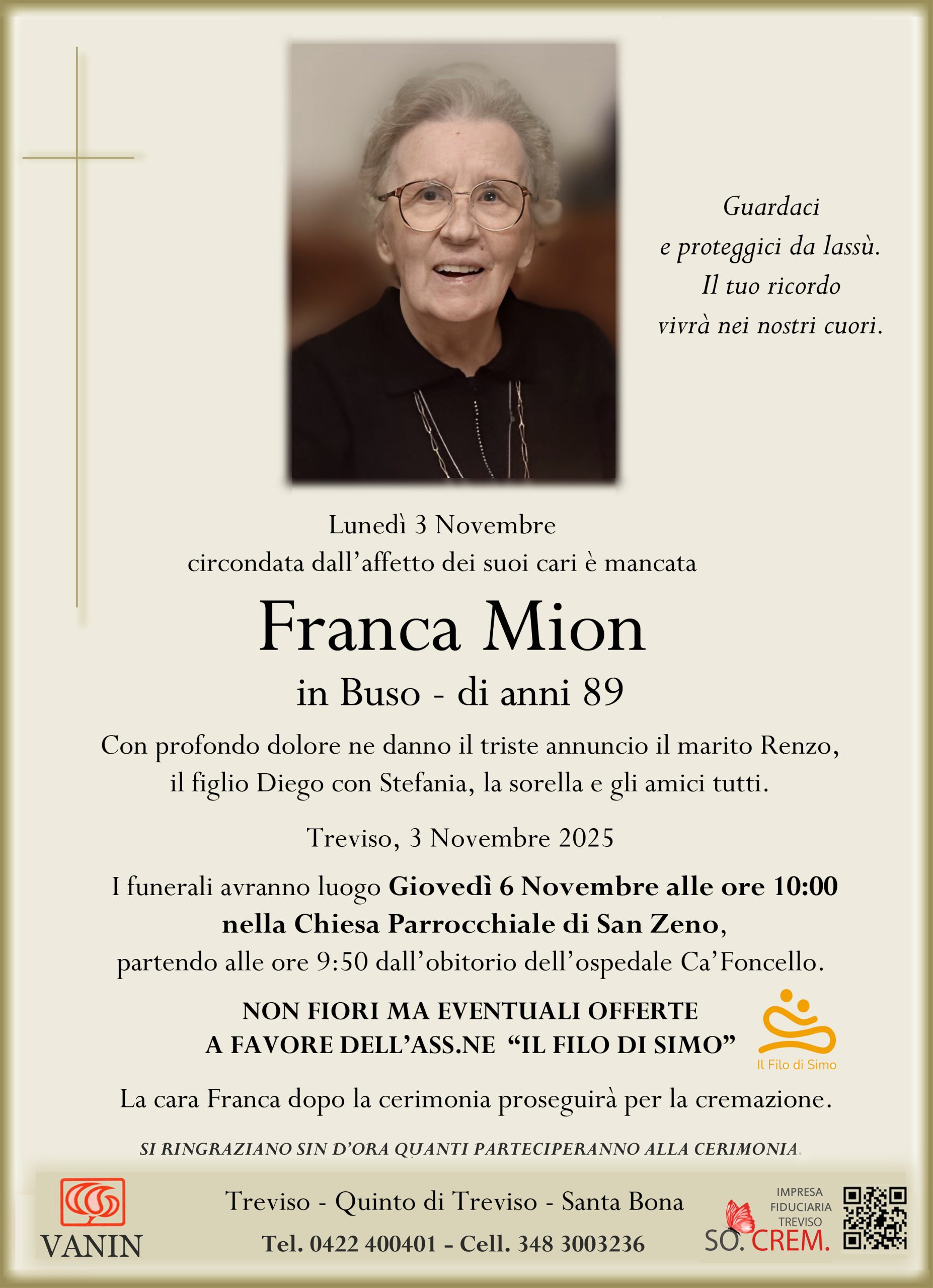 Data del decesso: Lunedì 3 Novembre 2025Data cerimonia: Giovedì 6 Novembre 2025