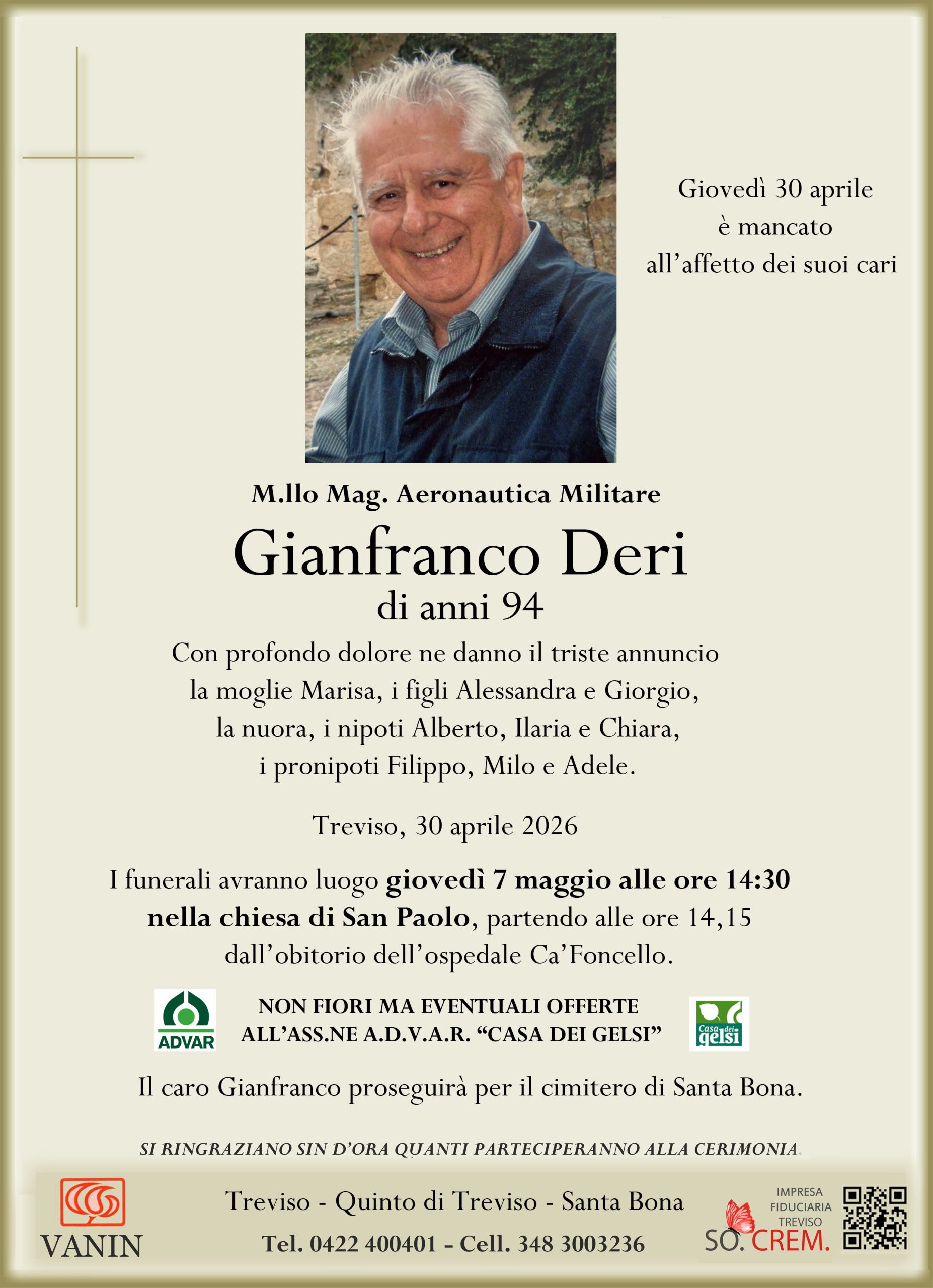 Data del decesso: Giovedì 30 aprile 2026Data cerimonia: Giovedì 7 maggio 2026