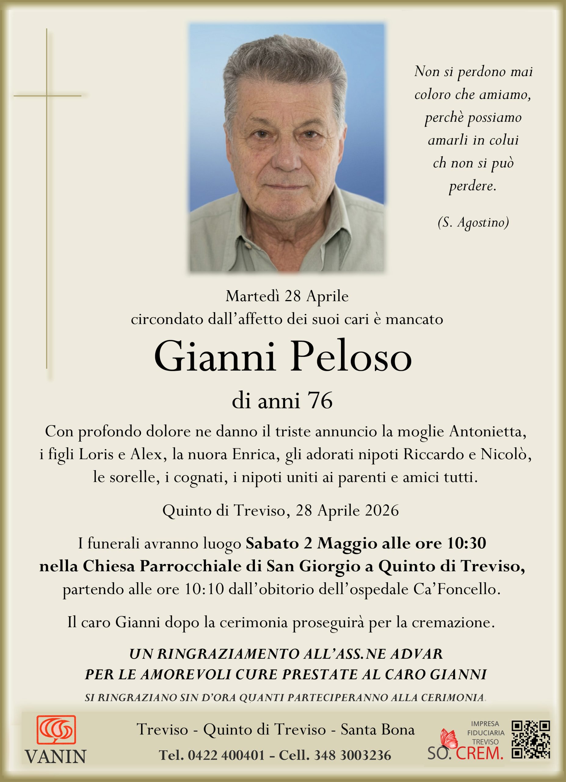 Il caro Gianni dopo la cerimonia proseguirà per la cremazione.