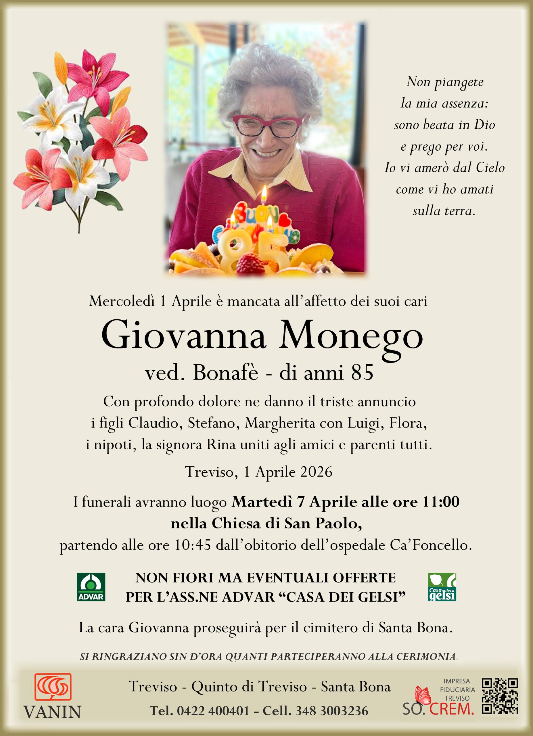 ved. Bonafè – di anni 85