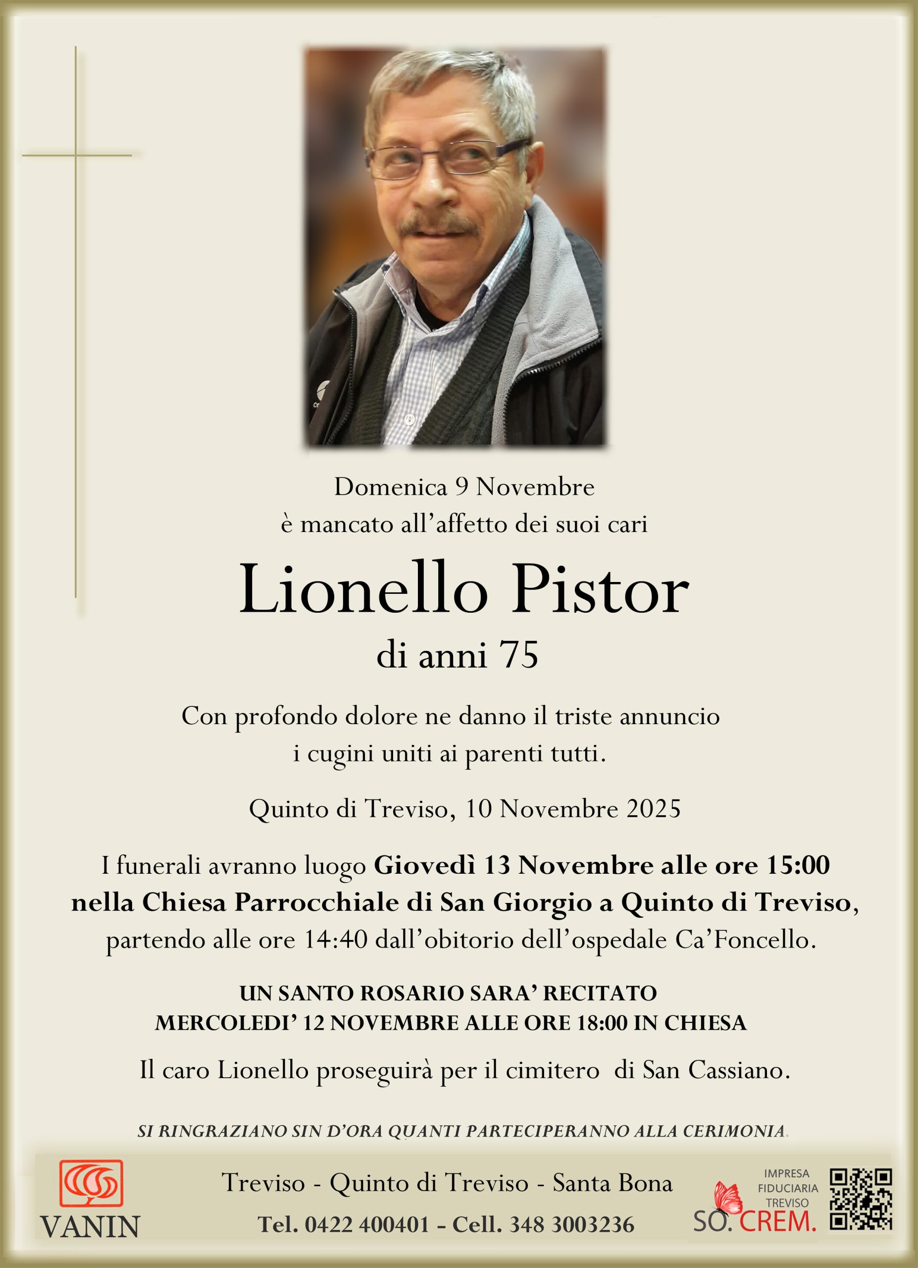 I funerali avranno luogo Giovedì 13 Novembre alle ore 15:00