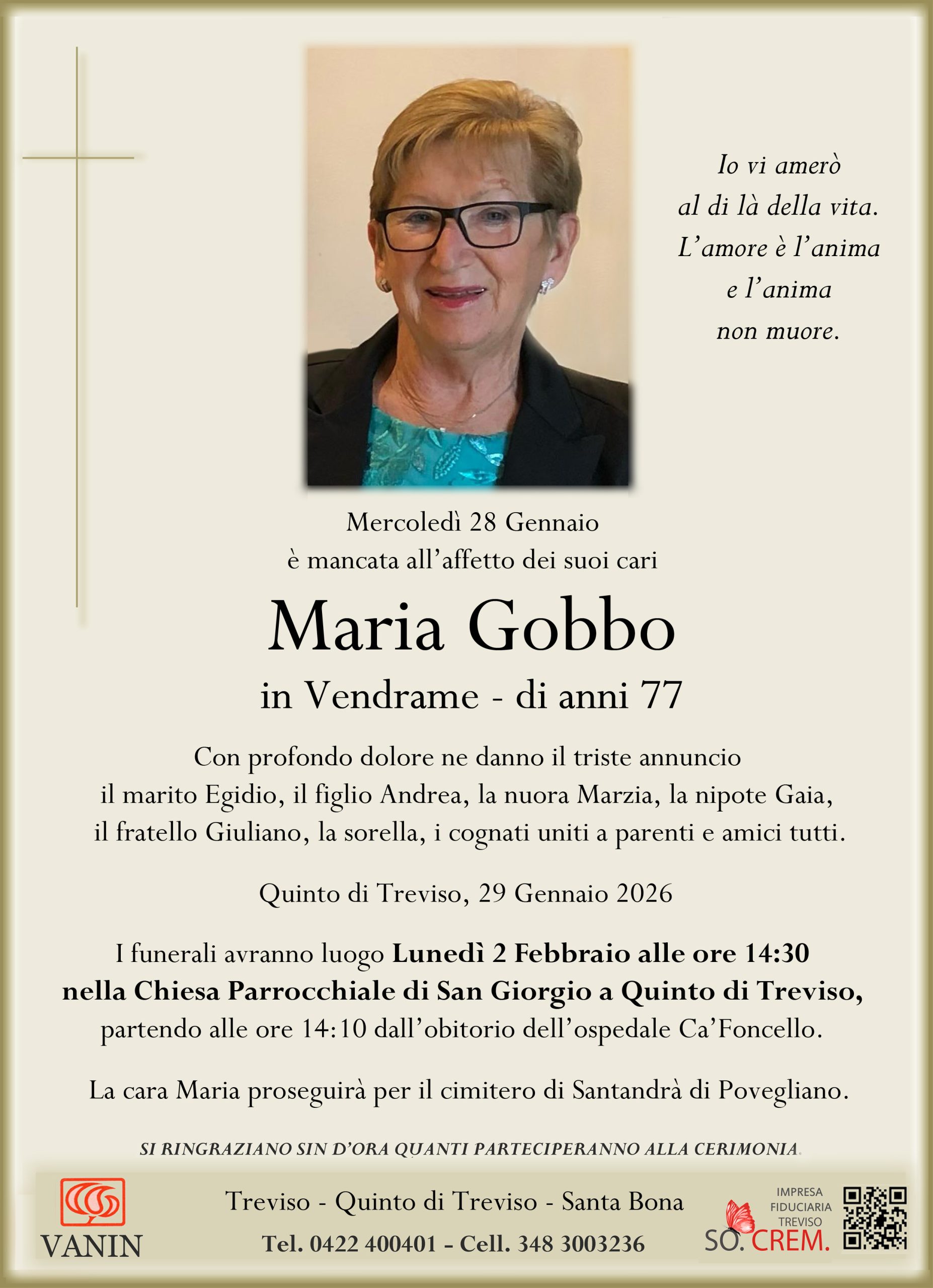 La cara Maria proseguirà per il cimitero di Santandrà di Povegliano.