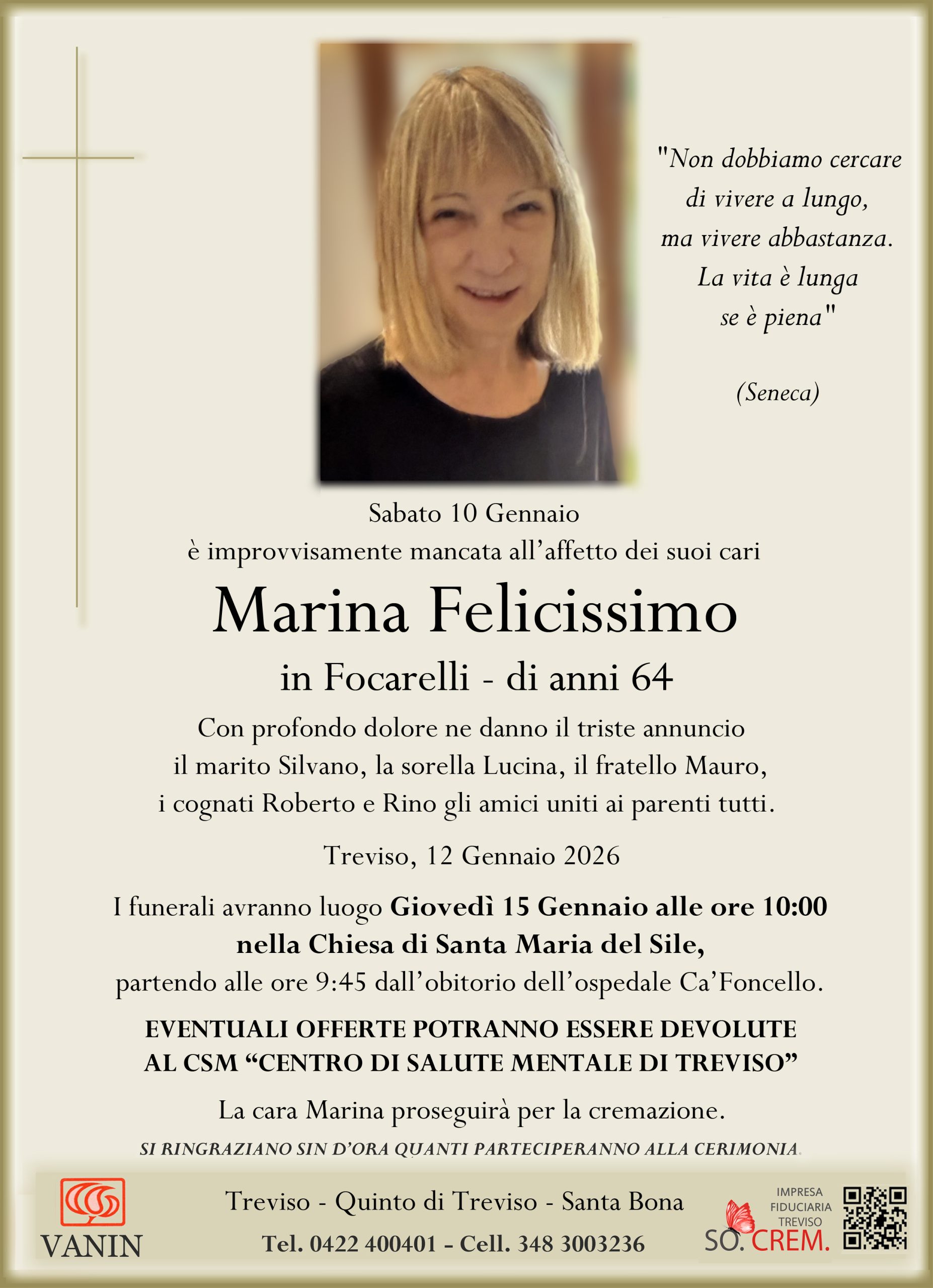 Data del decesso: Sabato 10 Gennaio 2026Data cerimonia: Giovedì 15 Gennaio 2026