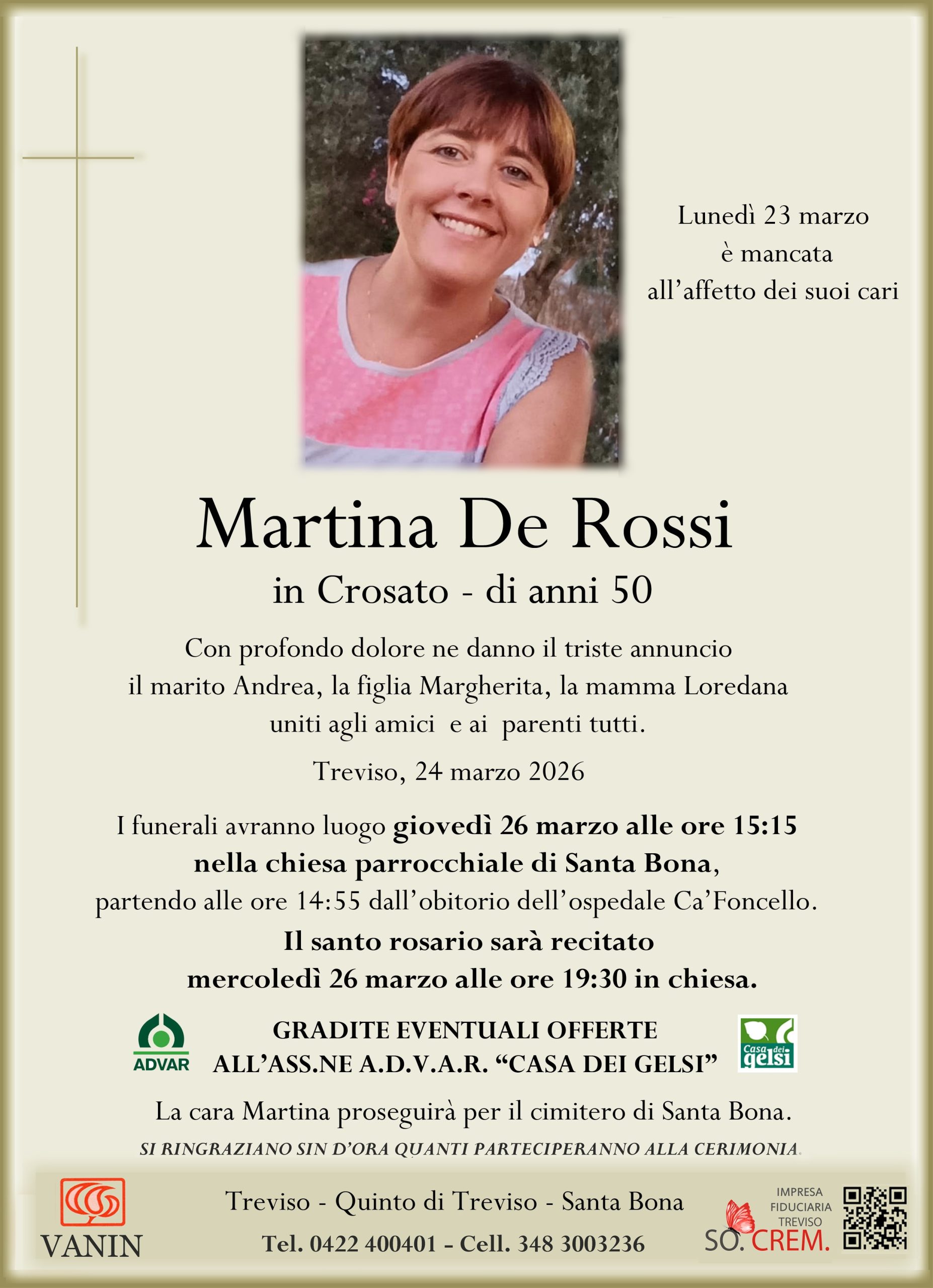 I funerali avranno luogo giovedì 26 marzo alle ore 15:15