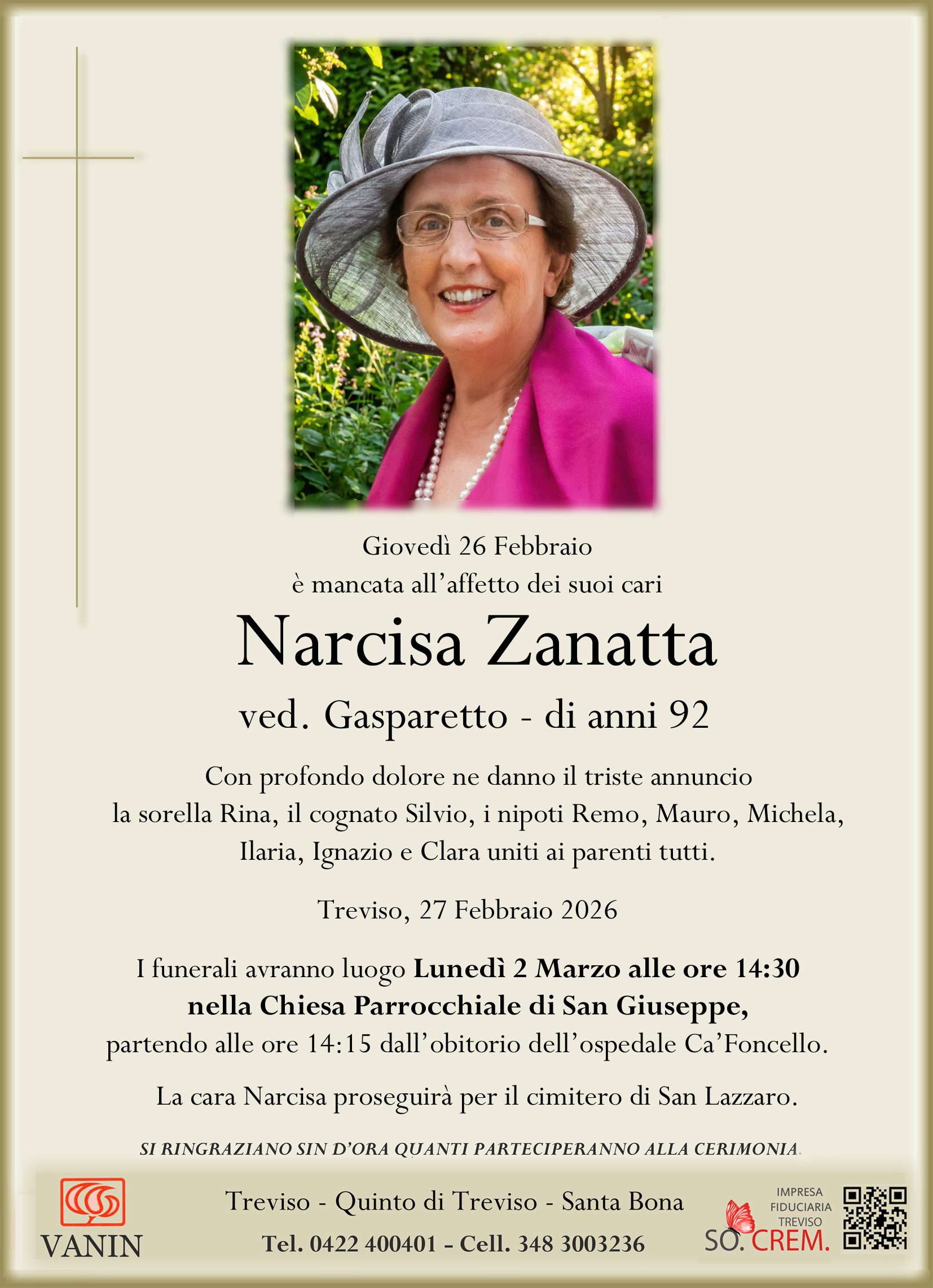 ved. Gasparetto – di anni 92