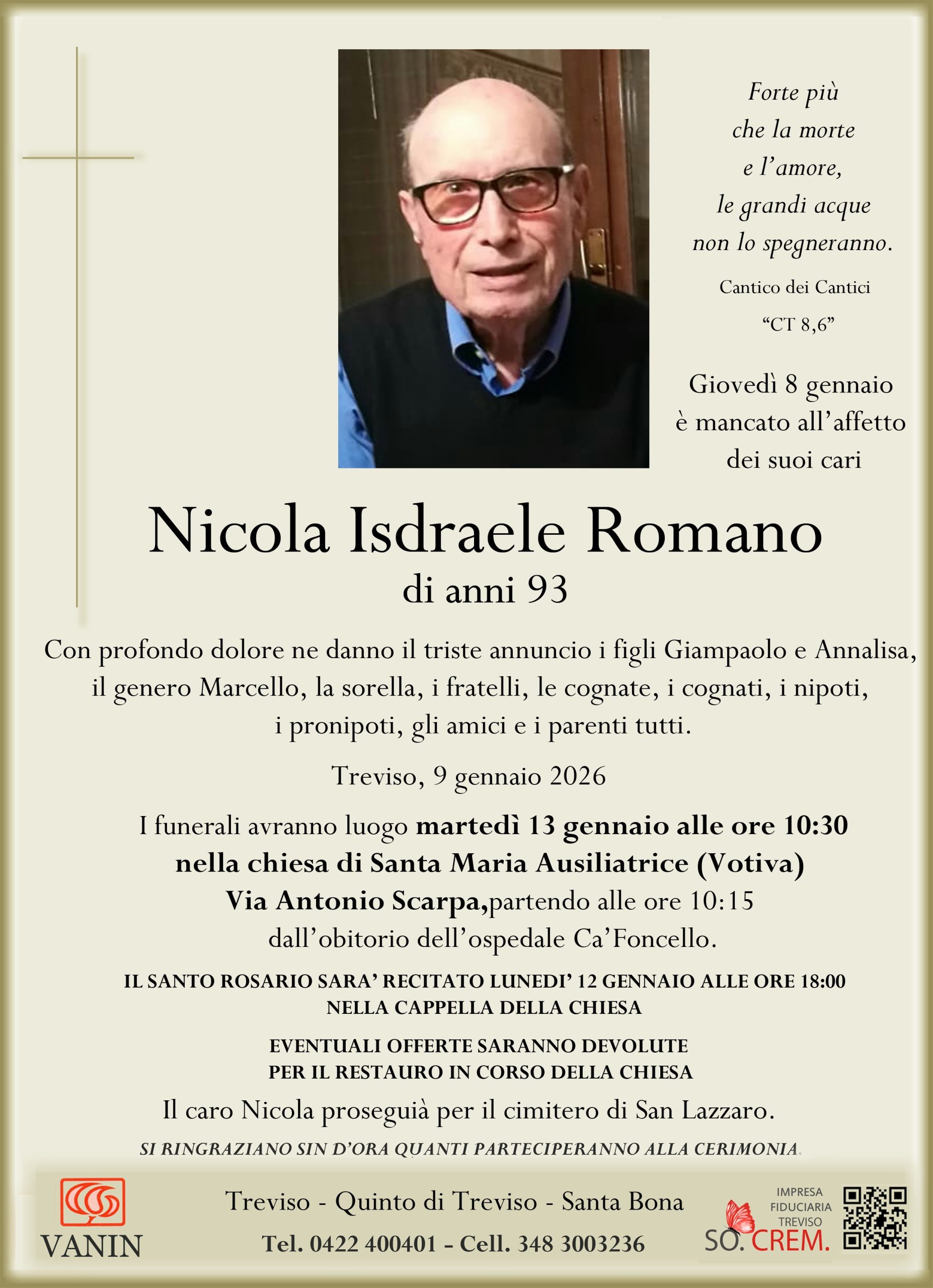 Data del decesso: Giovedì 8 gennaio 2026Data cerimonia: Martedì 13 gennaio 2026