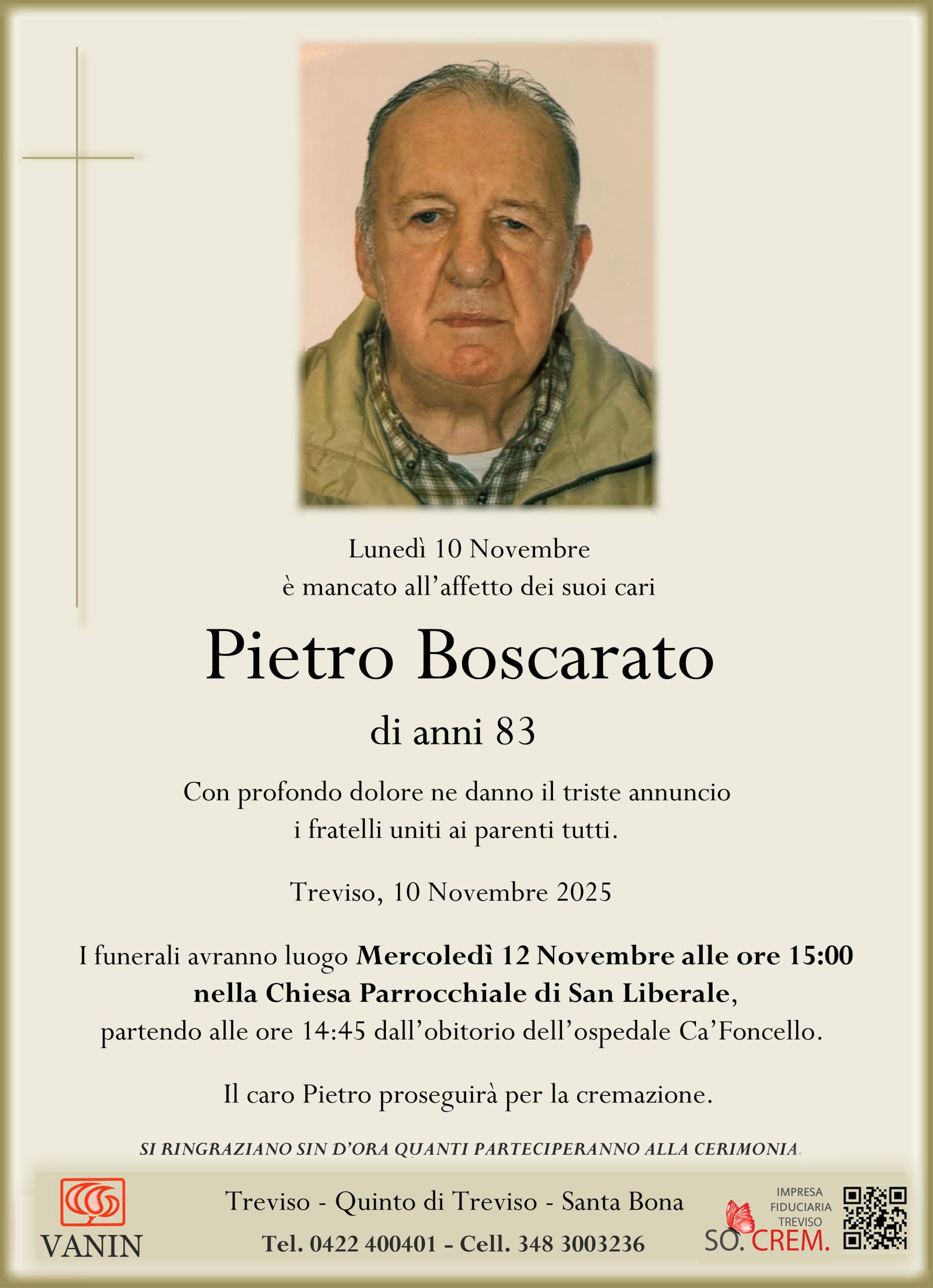 Il caro Pietro proseguirà per la cremazione.