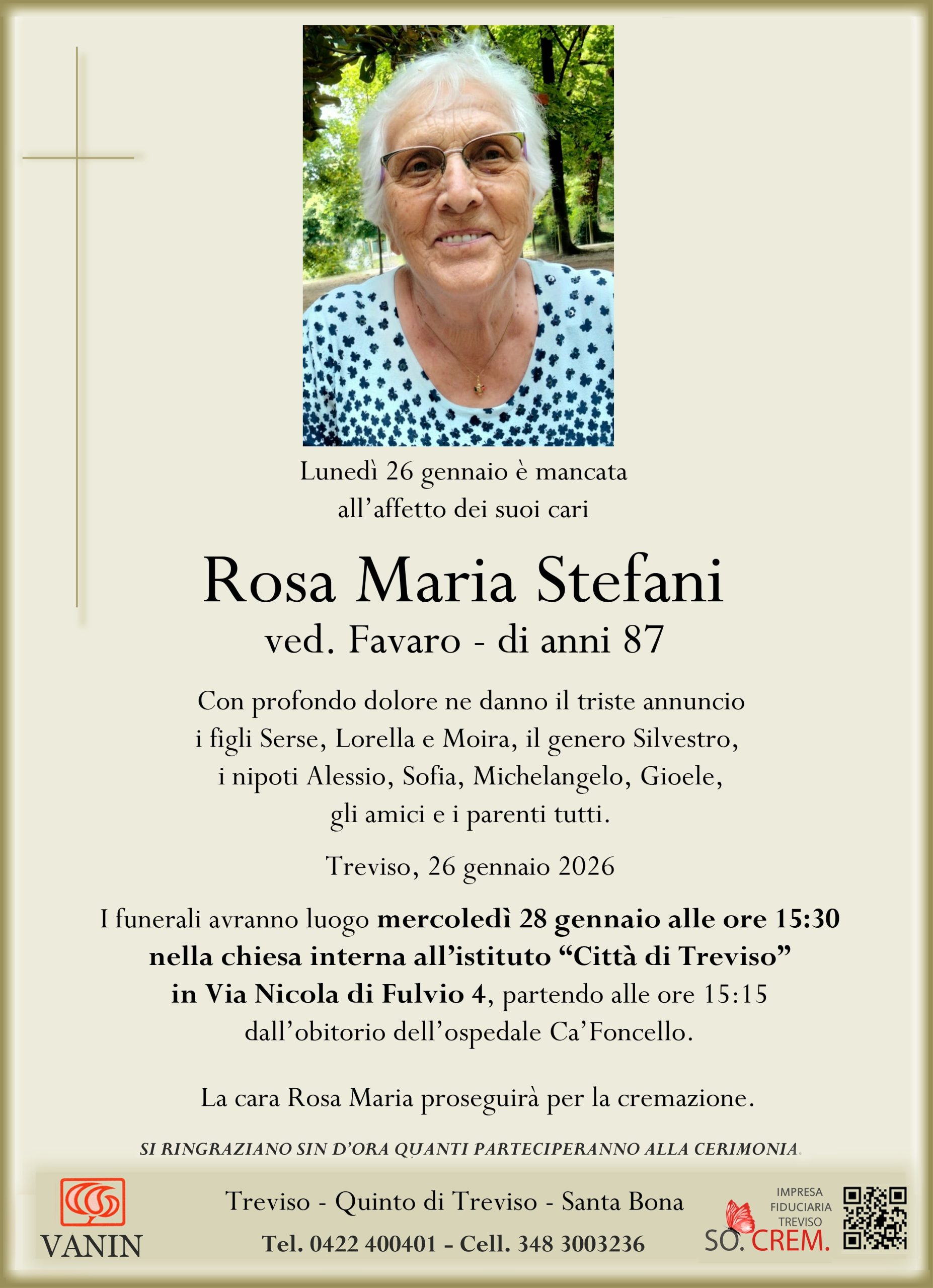 Data del decesso: Lunedì 26 gennaio 2026Data cerimonia: Mercoledì 28 gennaio 2026