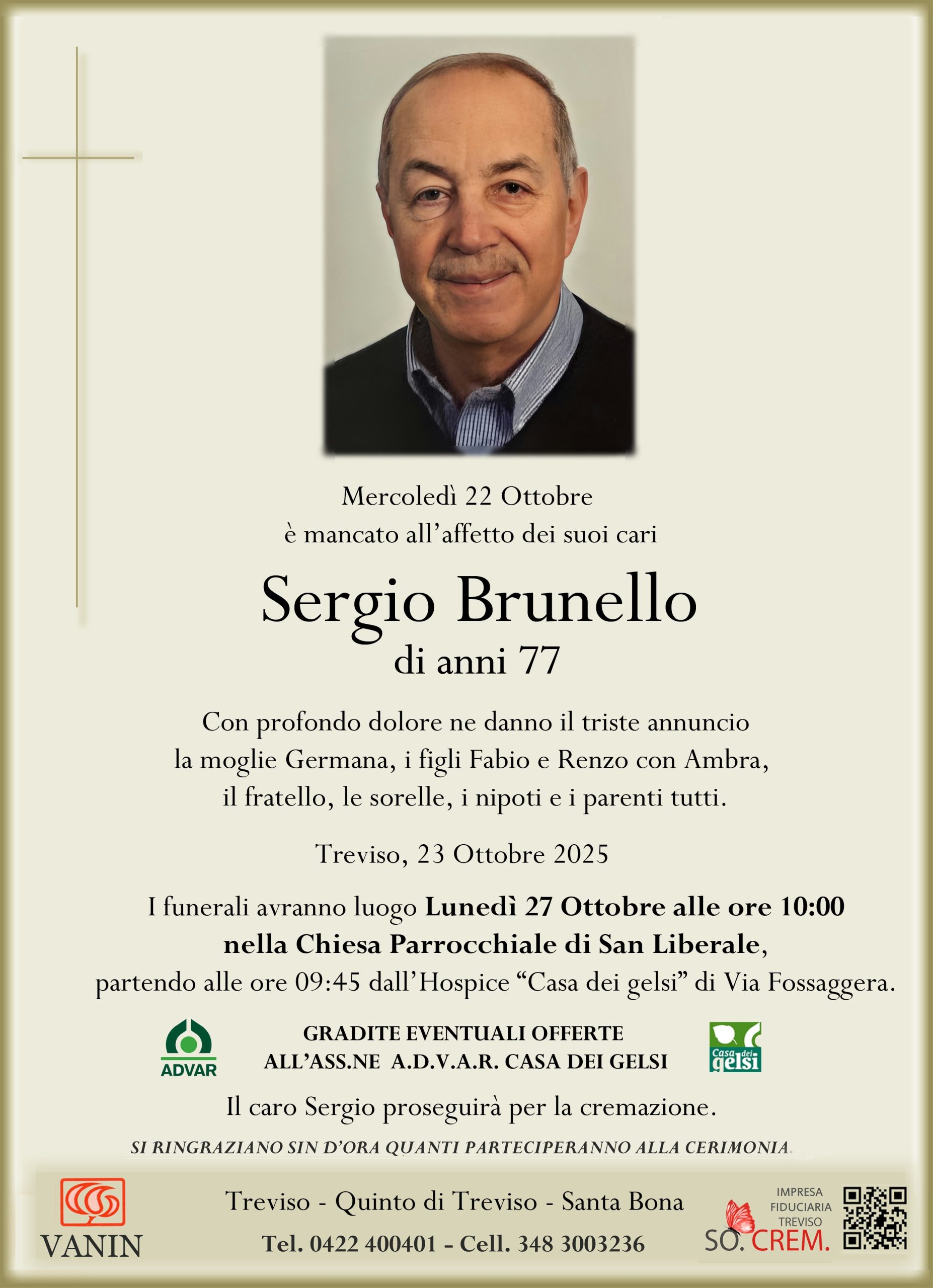 I funerali avranno luogo Lunedì 27 Ottobre alle ore 10:00
